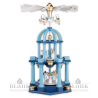 The traditional craftsmanship from the Erzgebirge is also immediately recognizable in this magnificent, colourful dome shaped pyramid with two floors and 8 long-robed angels. The craftsmen in our workshop in Grünhainichen lovingly produced this detailed Christmas pyramid in heavenly blue by hand. The artwork is 55 cm high and features 8 adorable Angels with Long Pleated Robes® in addition to 3 more hanging angels. The pyramid is operated with standard pyramid wax candles (∅14 mm).