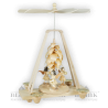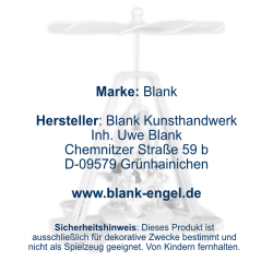 A classic of handcrafts from the Ore Mountains is this Christmas pyramid, whose wing wheels are driven by candles. Three small angels with pleated robes play music on their wind instruments and rotate around a filigree designed tree of wood shavings in the middle of the pyramid . These angels with short robes have also been crafted with care of clear natural wood.