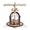 Four pleated robed angels play music on this masterfully crafted pyramid. Three more angels hover under the wing wheel and call with their trombone sounds for Advent season. The craftsmen from Grünhainichen in the German Ore Mountains bring to life the figurines, and carefully crafted details such as the instruments, and the angel wings underline this beautiful scenery.The clear wing wheel is a perfect contrast to the dark brown dome and baseplate, an economical use of golden colors rounds off harmonically the overall picture. The exclusive pyramid with seven pleated robed angels is powered by four tea lights. Four small bells of glass under the dome enchant you with their soft, melodic sound. This beautiful masterpiece is rightfully certified "echt Erzgebirge" (genuinely made in the Ore Mountains). Give your home a Christmas atmosphere with this angel pyramid.