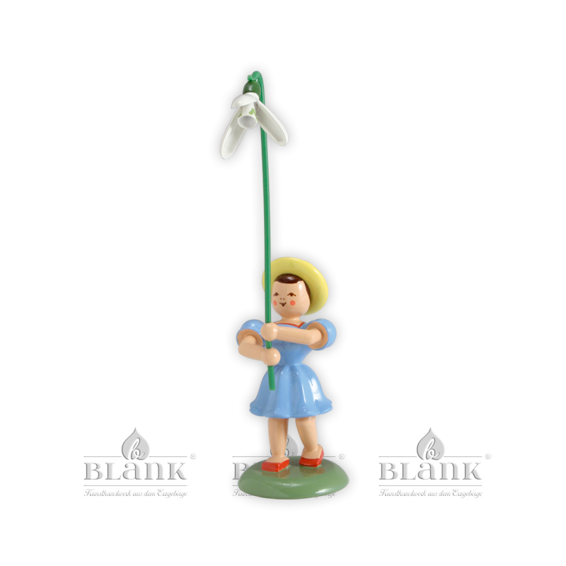 The figure carries a lovingly crafted snowdrop which was created with great attention to detail in our workshops in Grünhainichen. Enjoy this little flower child or give it away for everlasting flower greetings.