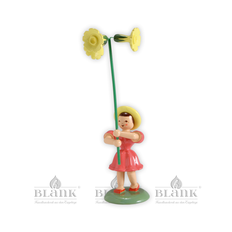 The figure carries a lovingly crafted primrose which was created with great attention to detail in our workshops in Grünhainichen. Enjoy this little flower child or give it away for everlasting flower greetings.