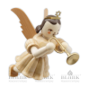 This little hanging angel looks down at his music-making friends from above. Securely attached to a golden ribbon, it accompanies the large angel orchestra from lofty heights. The natural-coloured figure with a short pleated skirt plays a golden trumpet. Whether as a tree ornament, gift tag, living room decoration or "small souvenir" - the hanging angels with pleated skirts from BLANK are real originals of the Erzgebirge handicrafts and will enchant everyone. The figures are made entirely by hand from local woods and inspire with their uniqueness. Thanks to the differently grained woods, each piece is unique.