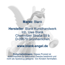 BLANK Kunsthandwerk is a traditional family business from Grünhainichen in the German Erzgebirge, which has been producing filigree angels with pleated skirts and high-quality Christmas decorations since 1955. In addition to pyramids, candle arches, nutcrackers and smoke figures, flower children and Easter bunnies are also elaborately handcrafted. For this purpose, the manufacturer's products have been approved by the Association of Erzgebirgischer Kunsthandwerker und Spielzeughersteller e. V. and awarded with the certificate "Echt Erzgebirge. Holzkunst mit Herz®".