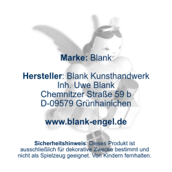 BLANK Kunsthandwerk is a traditional family business from Grünhainichen in the German Erzgebirge, which has been producing filigree angels with pleated skirts and high-quality Christmas decorations since 1955. In addition to pyramids, candle arches, nutcrackers and smoke figures, flower children and Easter bunnies are also elaborately handcrafted. For this purpose, the manufacturer's products have been approved by the Association of Erzgebirgischer Kunsthandwerker und Spielzeughersteller e. V. and awarded with the certificate "Echt Erzgebirge. Holzkunst mit Herz®".