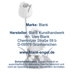 A tulip grows right next to it announcing the approaching spring. Figure and flower are elaborately hand-painted in our angel workshop in Grünhainichen and decorated with great attention to detail.