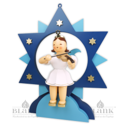 The star base serves as a supplement to our 30 cm tall angels in the star: this way the angels in the star can be easily set up if you don't want to hang them up. The matching star holder in light and dark blue also has a recess in which the power cable from older electric angels can be accommodated in the star. "Echt Erzgebirge. Holzkunst mit Herz®" Tip: Combine coloured figures with natural-coloured star holders and vice versa.